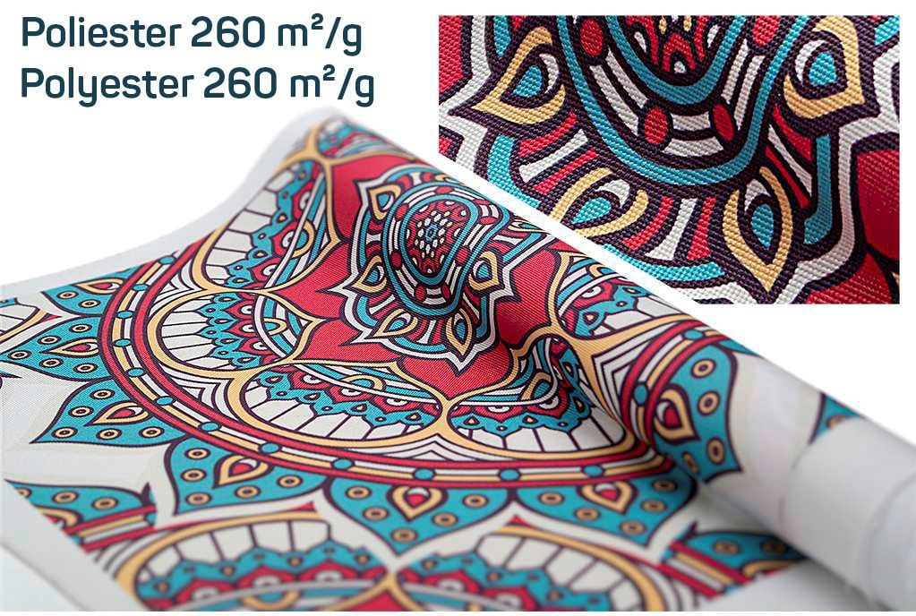 High quality print made in sublimation method on the entire area of the fabric. The number of the colors does not affect the price. Printing according to CMYK and PANTONE is a guarantee of real colors holding the highest durability and resistance to UV. The print does not rub off.