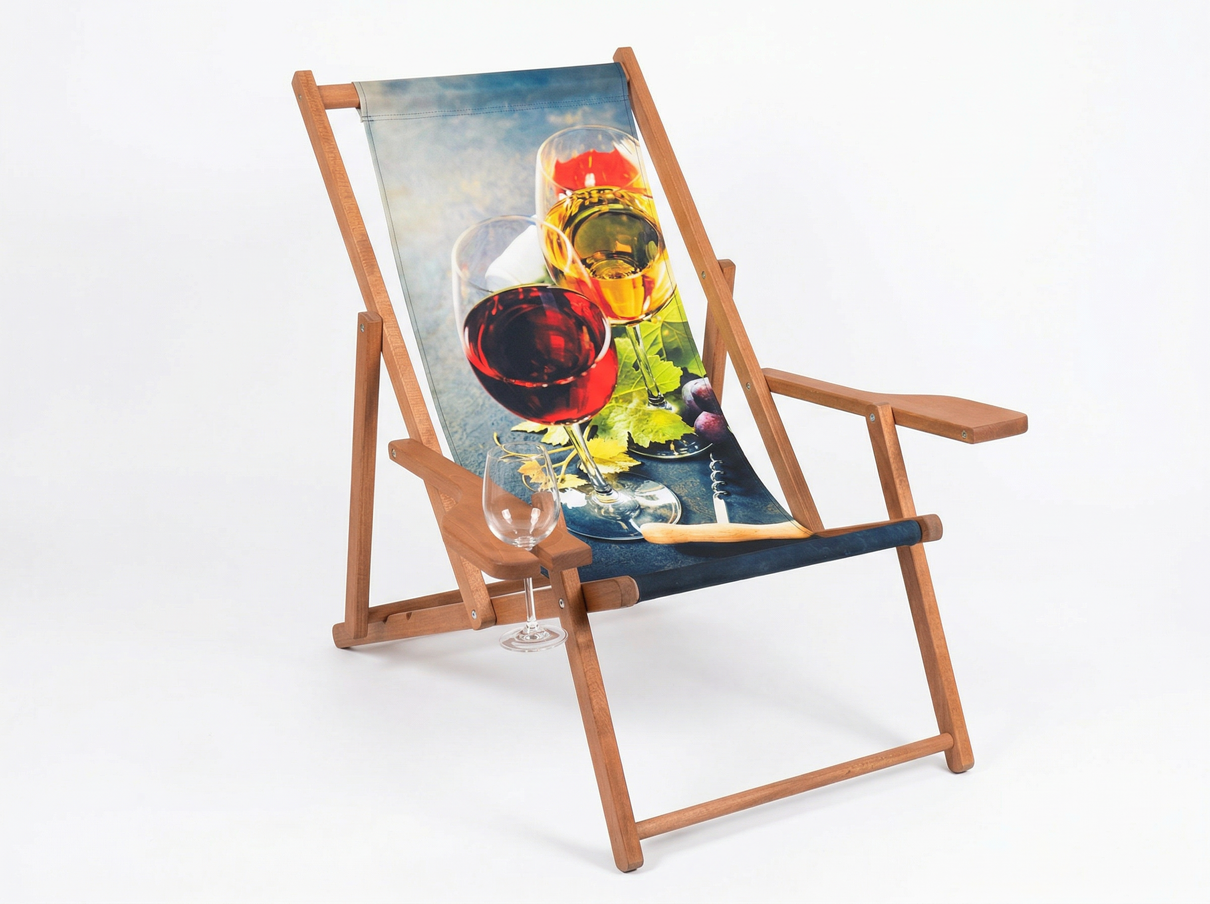 - Klasyczny drewniany leżak WINO to idealne rozwiązanie na eventy plenerowe. Wyposażony jest w dwa podłokietniki, z czego jeden z nich ma otwór dedykowany to umieszczenia w nim kieliszka wina.